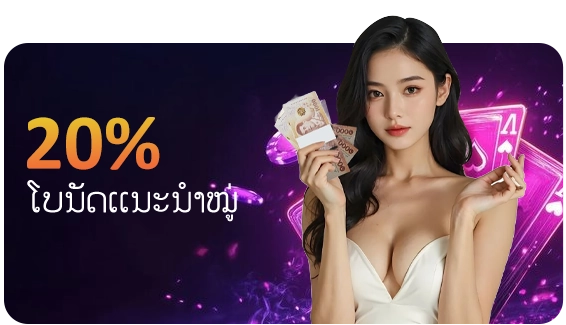 - ຮັບໂບນັດ 20% ຈາກເງິນຝາກຄັ້ງທຳອິດຂອງໝູ່ທ່ານ